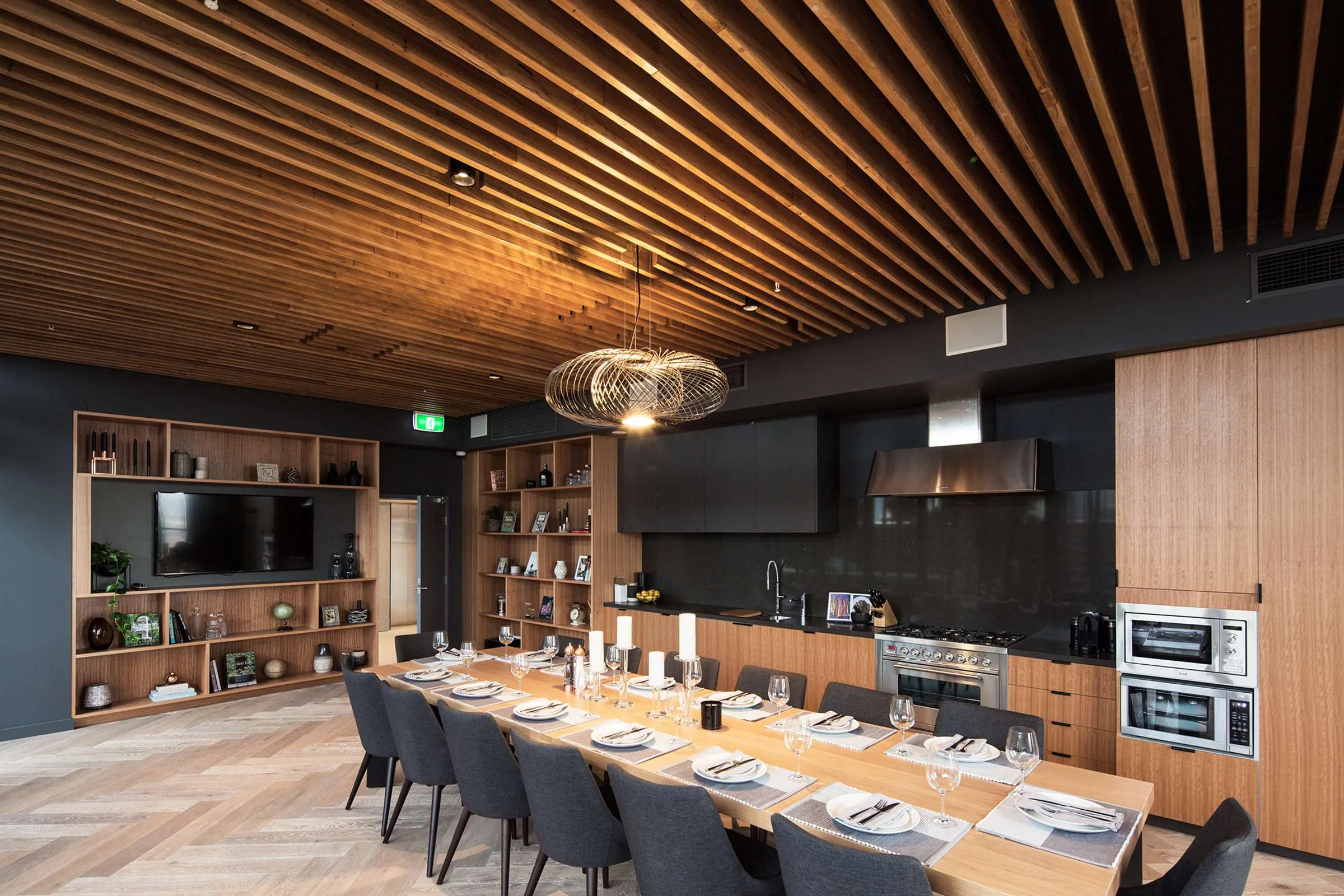 Private Dining Room with commercial-grade kitchen and seating for up to 14 guests