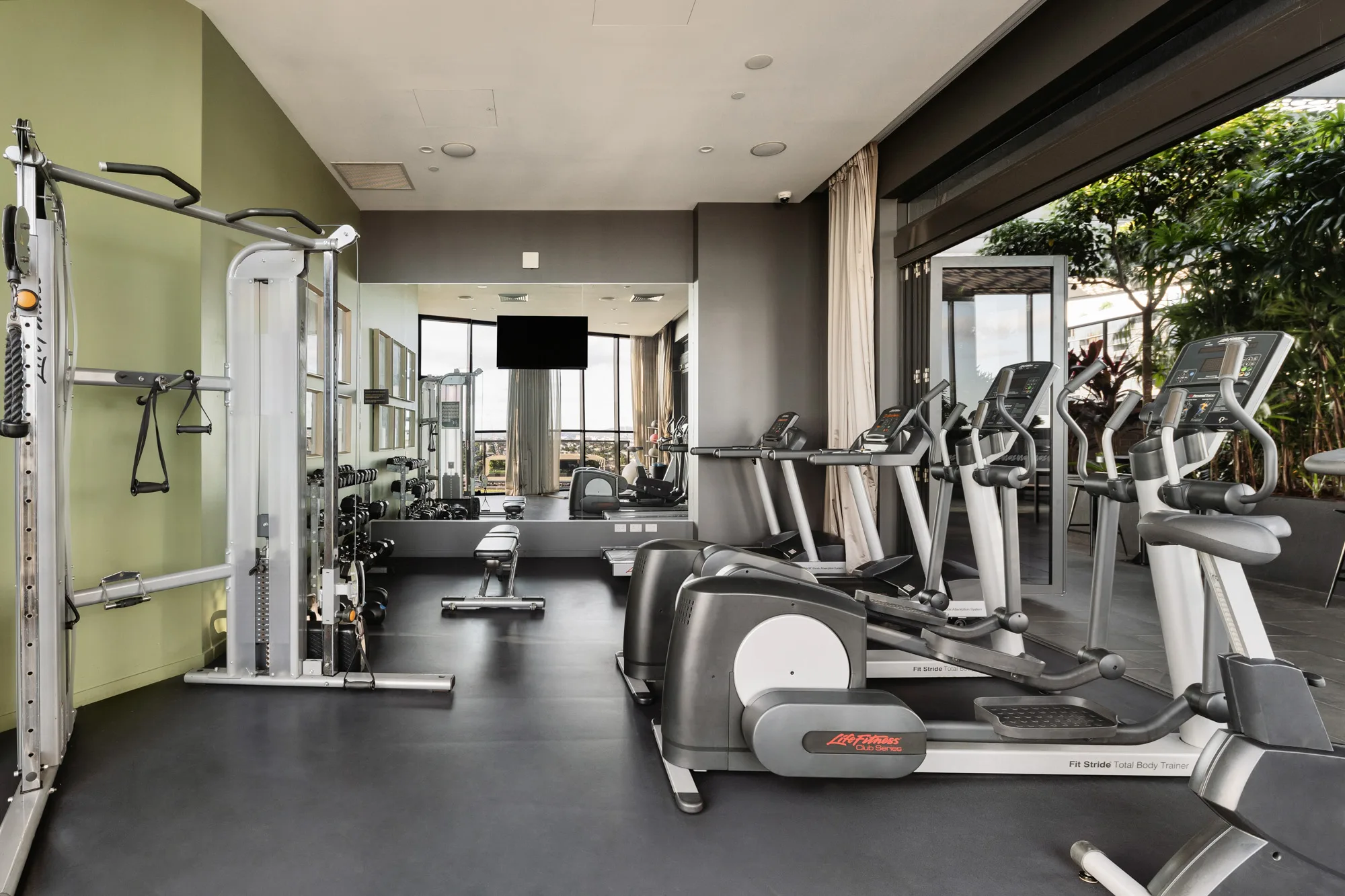 Fully equipped Fitness Centre featuring Technogym equipment and indoor/outdoor workout zones